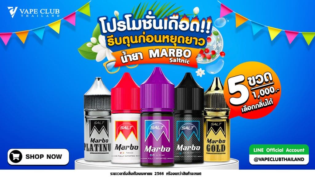 Marbo saltnic น้ำยาซอลนิคที่ใครหลายคนเลือกใช้ น้ำยาMarbo saltnic นำเข้าจากมาเลเซีย นิโคตินจัดเต็ม ถูกใจสายสูบแน่นอน ความจุน้ำยา 30 ml