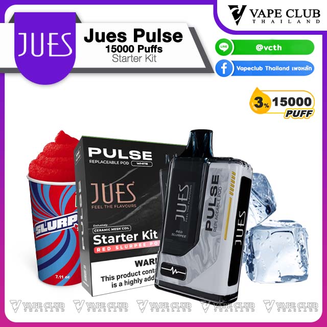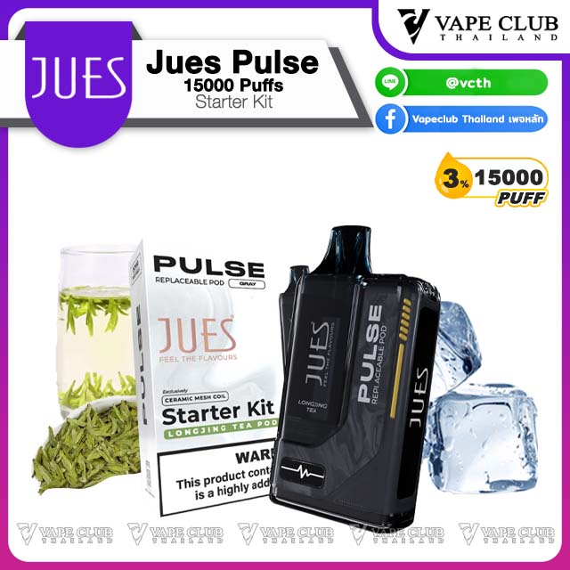- Jues Pulse Starter Kit 15000 Puffs (เครื่อง+หัวน้ำยา) 1 ชิ้น
