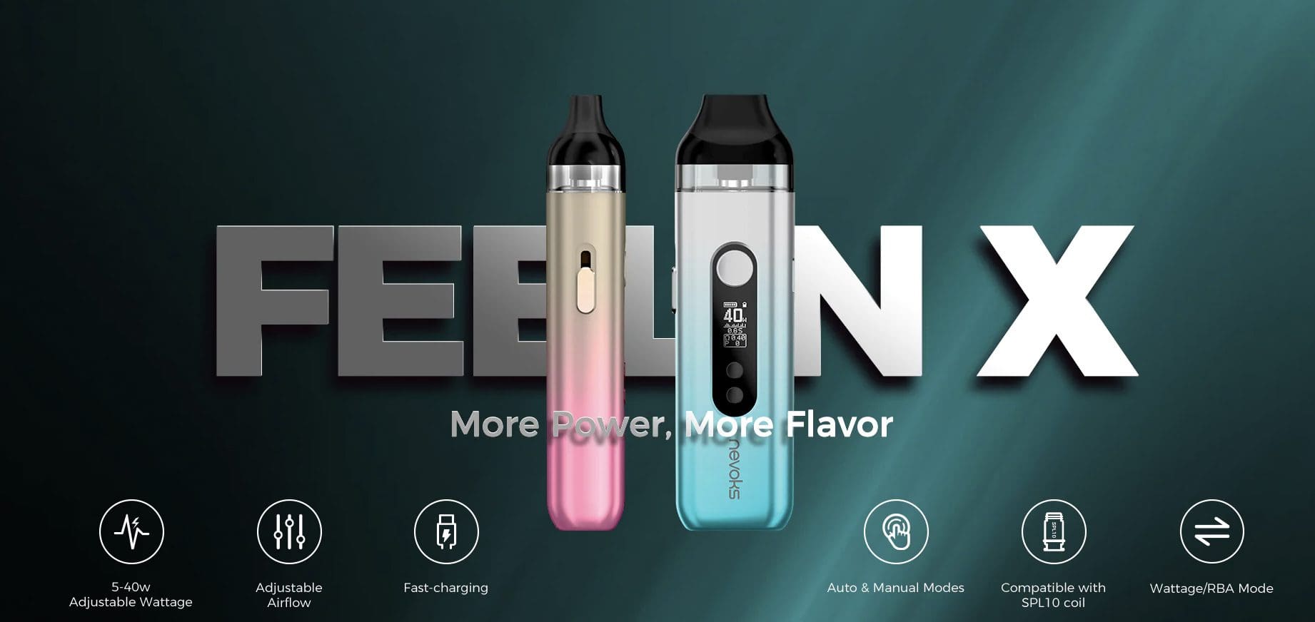 Nevoks Feelin X Pod Kit สินค้าใหม่ล่าสุดจาก Nevoks เป็นตัวเรือธงใหม่ล่าสุด มาพร้อมขนาดกำลังเหมาะมือ โดยขนาดใหญ่กว่า Nevoks Feelin ตัวรุ่นเก่านิดหน่อย แต่ได้แบตเตอรี่ 1600 mAh บิ๊วอินมาให้ และที่สำคัญสามารถปรับวัตต์ได้ 40 วัตต์ จุน้ำยาได้มากถึง 5 ml เรียกได้ว่าพกพาไปเที่ยวได้อุ่นใจมากๆ