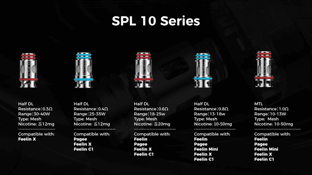 จุดเด่น เป็น Coil ที่มีค่าโอห์มให้เลือกหลายขนาด และยังมีทั้ง Cartridge เปล่าที่สามารถเลือกใส่คอยล์นี้ได้อีกหลากหลาย ตัวคอยล์ทำออกมาในรูปแบบ Mesh Coil ตัวคอยล์ได้ออกแบบมาให้น้ำยารั่วซึมได้ยากมากด้วยโอริ่งถึง 3 ชั้น มีให้เลือก 2 ค่าโอห์ม 0.3 / 0.4 / 0.6 / 0.8 และ 1.0 เลือกใช้ได้ทั้งกับน้ำยา Salt nic และ Freebase