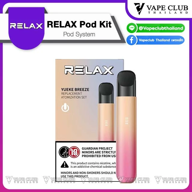 RELAX Pod Kit พอตเปลี่ยนหัวตัวใหม่ล่าสุด จากแบรนด์น้องใหม่อย่าง RELAX มาพร้อมรูปทรงที่เรียบสวย ดูหรูหรา มีขนาดเล็ก น่าพกพา ใช้งานง่าย สามารถเปลี่ยนหัวน้ำยาได้แบบง่ายๆ เนื่องจากเป็นแบบ Close System ที่คุณสามารถเลือกใช้หัวพอตที่ชื่นชอบได้ตามต้องการ ถึงเครื่องจะมีขนาดเล็ก แต่มาด้วยแบตเตอรี่ความจุถึง 380 mAh ที่ชาร์จได้ด้วย USB Type-C อีกทั้งยังสะดวกสุดๆในการใช้งาน ด้วยไฟ LED ที่ตัวเครื่องที่แสดงปริมาณแบตเตอรี่ได้อย่างชัดเจน เป็นพอตที่เหมาะมากๆในการพกพาไปใช้งาน พร้อมรับวันชิลๆของคุณ