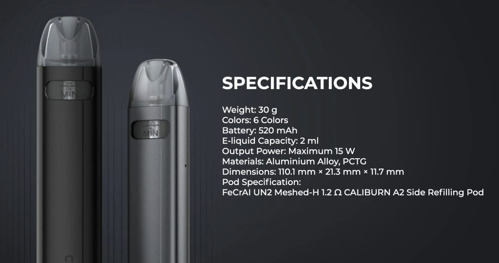 Caliburn A2S Pod Kit พัฒนาโฉมใหม่ และได้อัปเกรดมาจากพอตไฟฟ้ารุ่นยอดนิยมอย่าง Caliburn A2 มีการปรับปรุงดีไซน์ให้ดูหรูหราขึ้น ตัดปุ่มสูบออก มาพร้อมกับไฟเคลื่อนไหวแบบ Light Matrix ในระหว่างสูบ เพิ่มความสุนทรีย์ในการสูบมากขึ้น