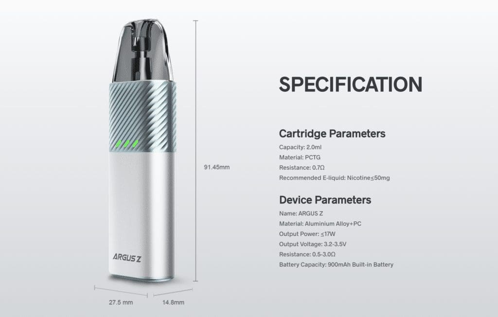 สเปค VOOPOO Argus Z Pod Kit