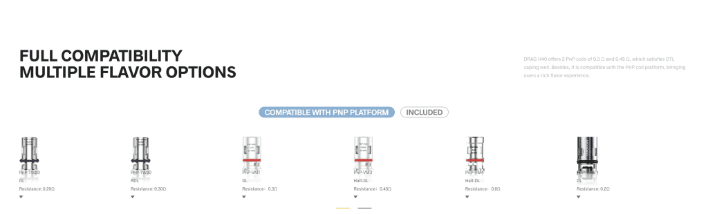 • สามารถใช้ร่วมกับ Tank Pnp Pod II ขนาด 5ml และ Voopoo Coil PNP / คอยล์ VOOPOO PnP-RBA
