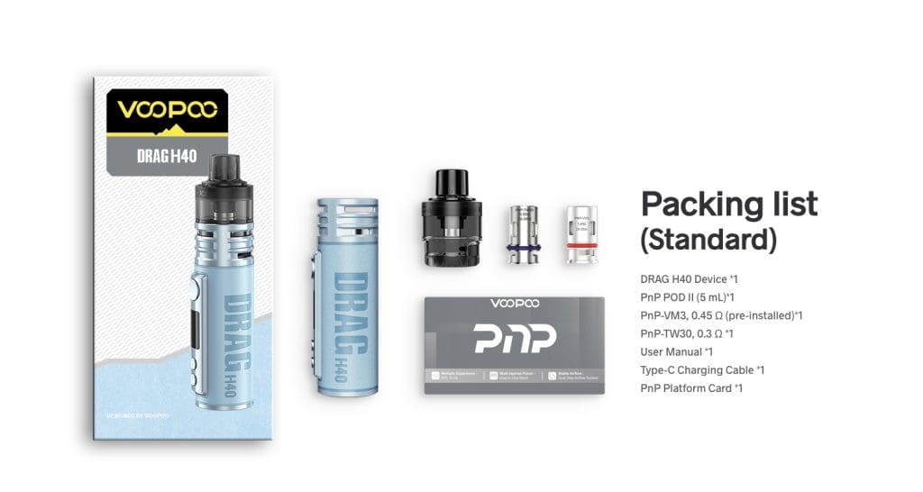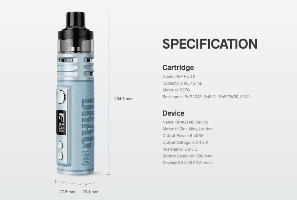 • DRAG H40, Pod mod ที่กะทัดรัดที่สุดของ VOOPOO พร้อมกำลังไฟสูงสุด 40 W สำหรับสาย DTL เทคโนโลยี DUAL-IN-ONE ที่ใช้ในขดลวดช่วยเพิ่มประสิทธิภาพการทำควันได้อย่างมาก