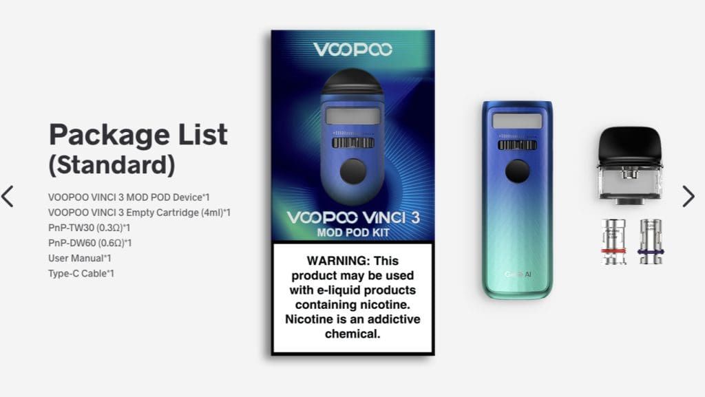 ในกล่อง Voopoo Vinci 3 Pod Kit มีอะไรบ้าง