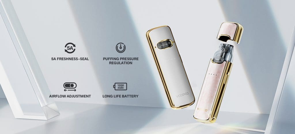 VOOPOO VMATE E Pod Kit ด้วยแรงบรรดาลใจจากดีไซน์เนอร์ผู้ผลิตออกแบบสินค้าที่อยากให้มีความหรูหรา และดูพรีเมี่ยม โดยผู้ออกแบบต้องการให้ผู้ใช้งานมีความสุขทุกครั้งหลังจากได้เป็นเจ้าของเครื่อง Vmate E