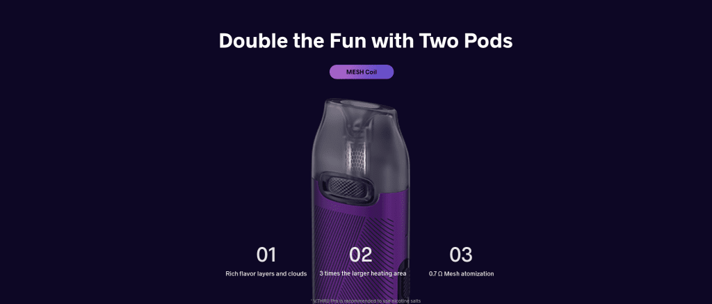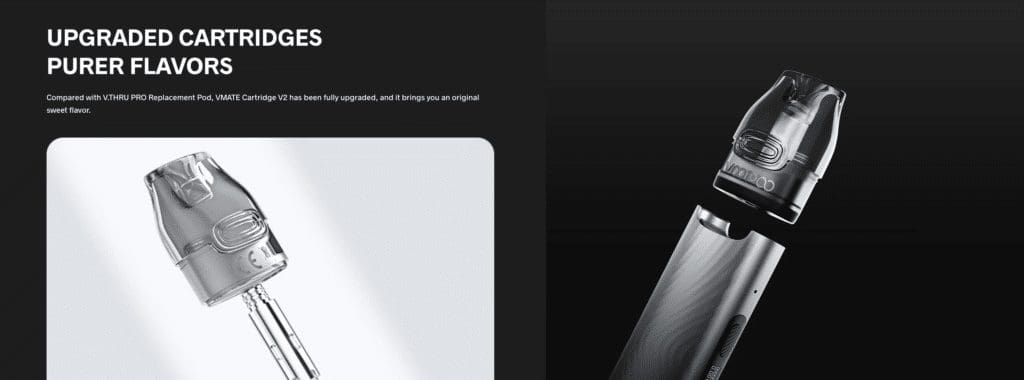 อัพเกรดหัวพอตใหม่ที่ดีกว่าและให้รสชาติสัมผัสที่หวานหอมมากกว่ารุ่น V.THRU PRO Replacement Pod และ VMATE Cartridge V2