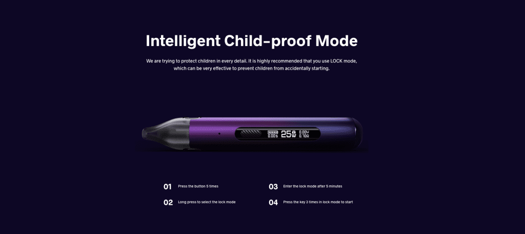 - ตัวเครื่องมีฟังค์ชั่นการล๊อกการสูบ เพียงกดปุ่ม 3 ครั้ง กดปุ่มค้างเลือกที่โหมดล๊อค