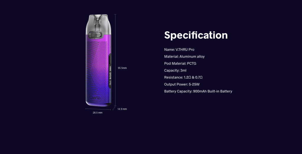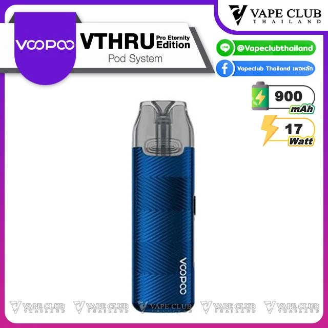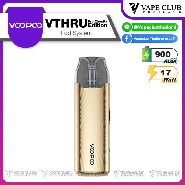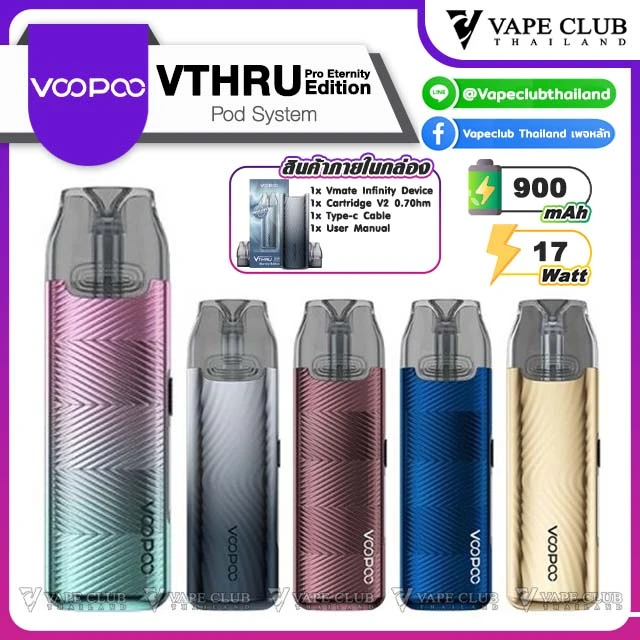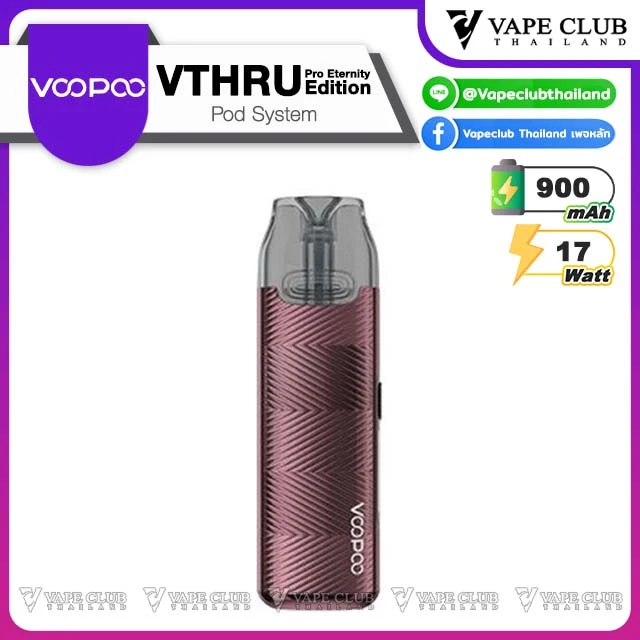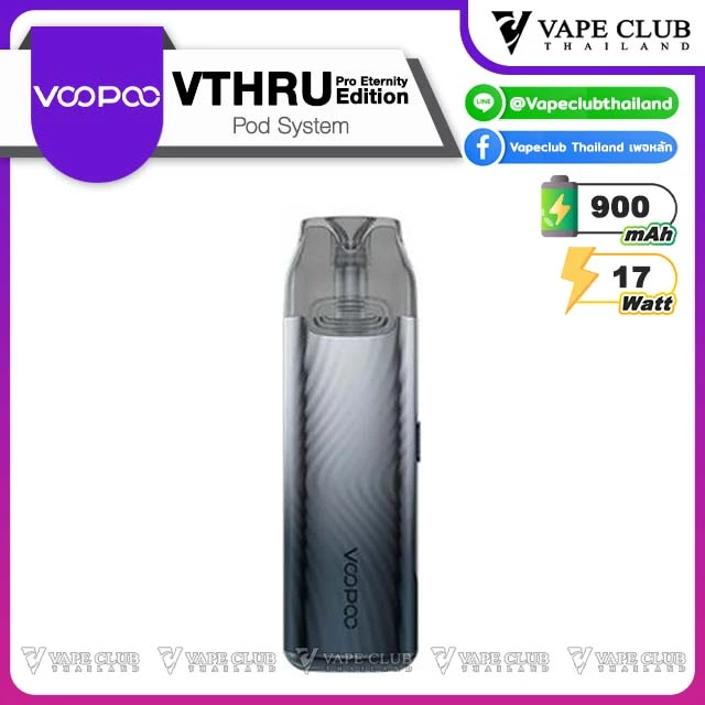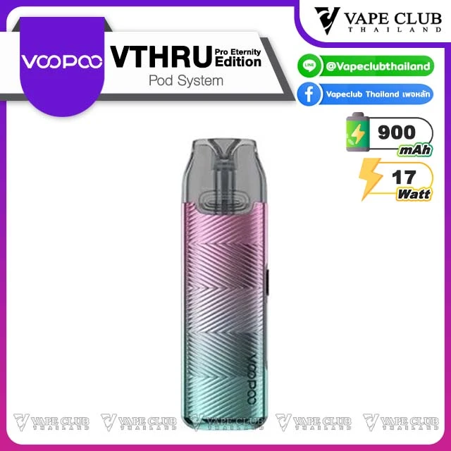 Voopoo Vthru Pro Eternity Edition พอตตัวแรงจากค่าย Voopoo ที่มาพร้อมดีไซน์สวยๆ และชิปเซทตัวใหม่ที่สมบูรณ์แบบอย่าง Gene Chipset และแบตเตอรี่ขนาด 900 mAh และระบบ Fast Charge มีฟังค์ชั่นการล็อคเครื่องเพื่อป้องกันการนำไปสูบ และบันทึกการนับจำนวนคำในการสูบ ตัวพอตรุ่นใหม่ที่ทางผู้ผลิตบอกว่า มาแบบดับเบิ้ลความสนุกเลย เพราะให้มาถึง 2 รุ่น นั่นคือ ขนาด 0.7 แบบ Mesh coil และ 1.2 โอห์มแบบ Gene Helix Coil คอยล์เฉพาะของ Voopoo เท่านั้น