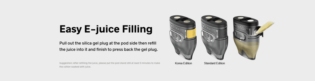 การเติมน้ำยาสามารถทำได้ง่ายด้วยการดึงจุกด้านข้างออก แล้วเติมน้ำยา เมื่อเติมเสร็จแล้วก็ปิดจุกเข้าที่เดิม เพียงเท่านี้หัวพอตก็พร้อมใช้งานแล้ว